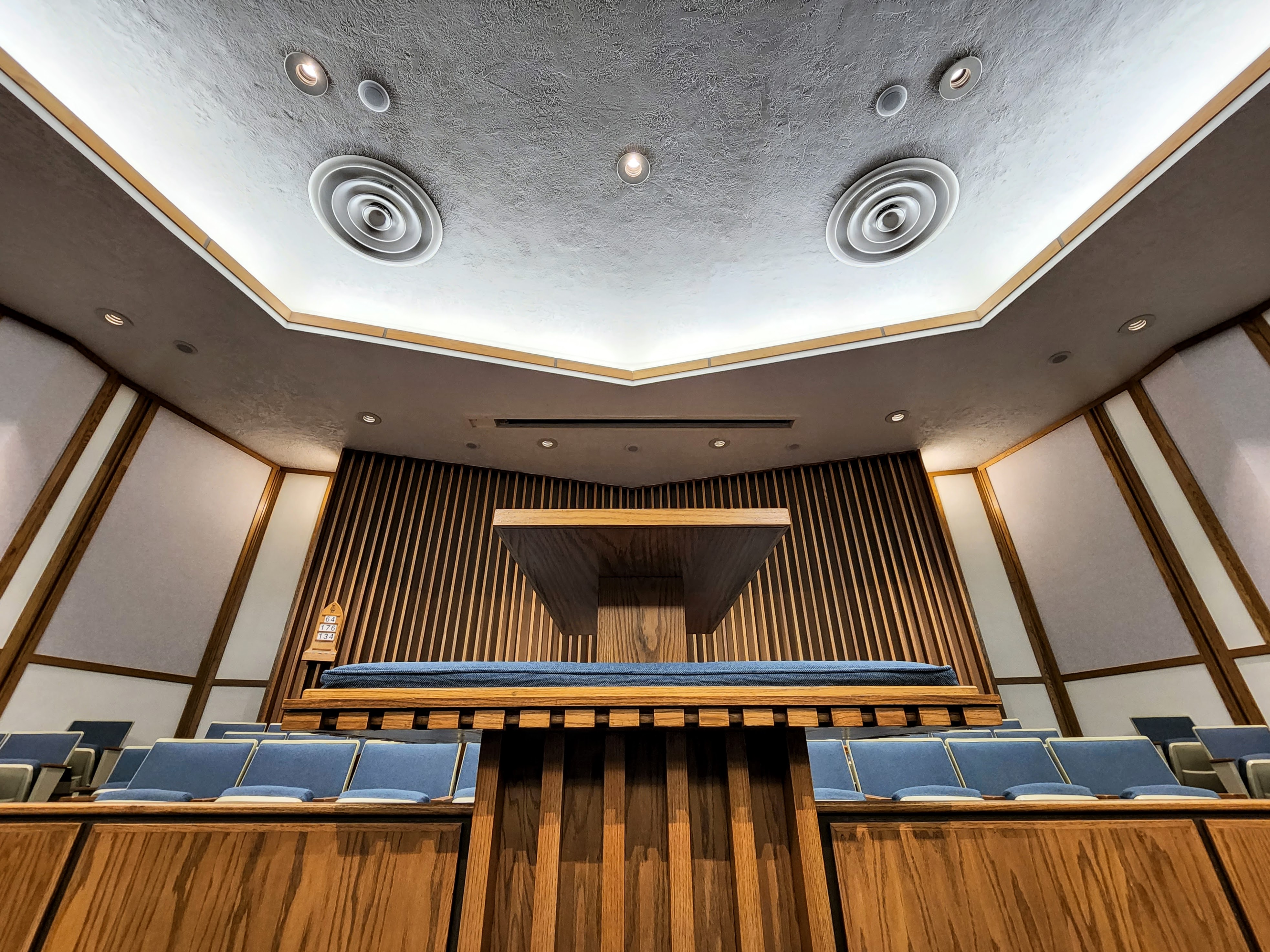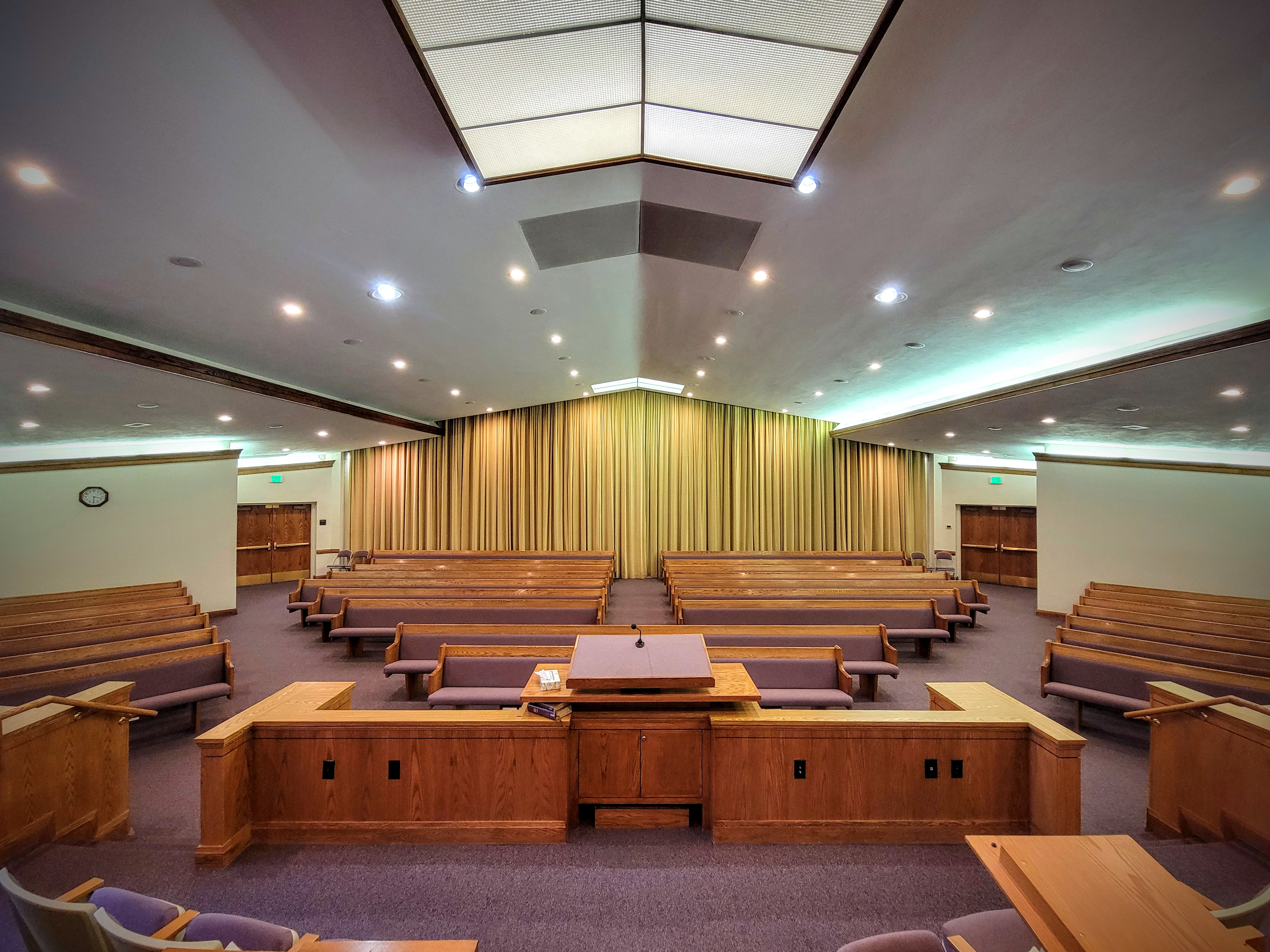The Youngberg Stake Center was designed by an independent architect named Alv Youngberg. It proved so popular that it was reused 22 times and became one of the church’s standard plans. It was later taken over by the Stephens. The Youngberg contains a particularly beautiful rostrum.