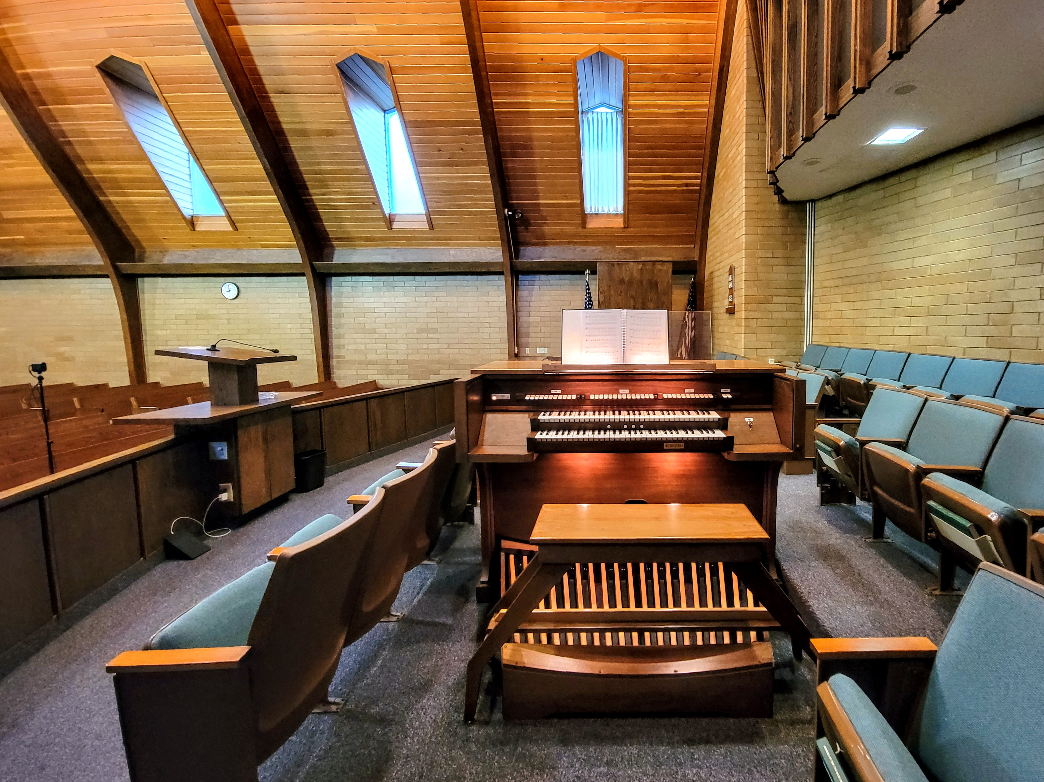 With the exterior changes to the Brower and Cody models, modernist elements in the chapel were stripped away and replaced with classical motifs. The bright, open aesthetic was retained and in some cases enhanced with lighter wood stains, brighter lights, and soft pastel coloring. The result was a new kind of chapel experience, one that felt particularly welcoming, bright, and comfortable. This sense of comfort is enhanced by the traditionalism that is associated with classical architectural motifs.