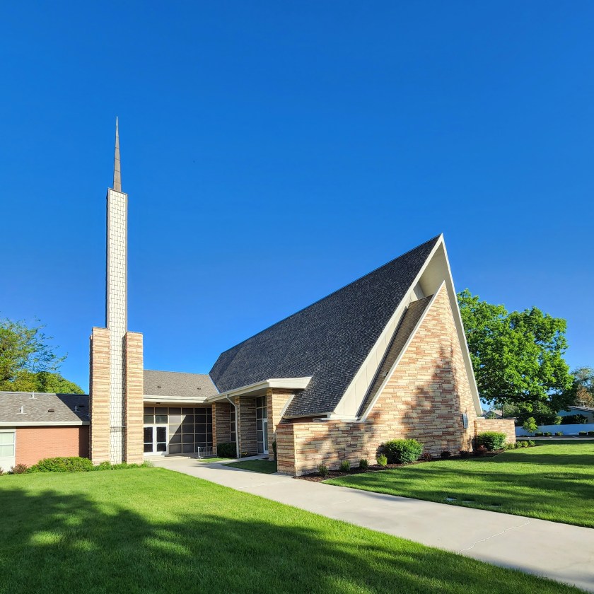 Many non-LDS Christian churches from this period look somewhat dated and kitschy today. Their architecture is often described as “modernistic” or “space age.” The LDS church was more conservative and ultimately more successful in its modern period. There were however a few “modernistic” chapels built by the LDS church during this period. This includes a charming meetinghouse built in Liberty Idaho, shown above.