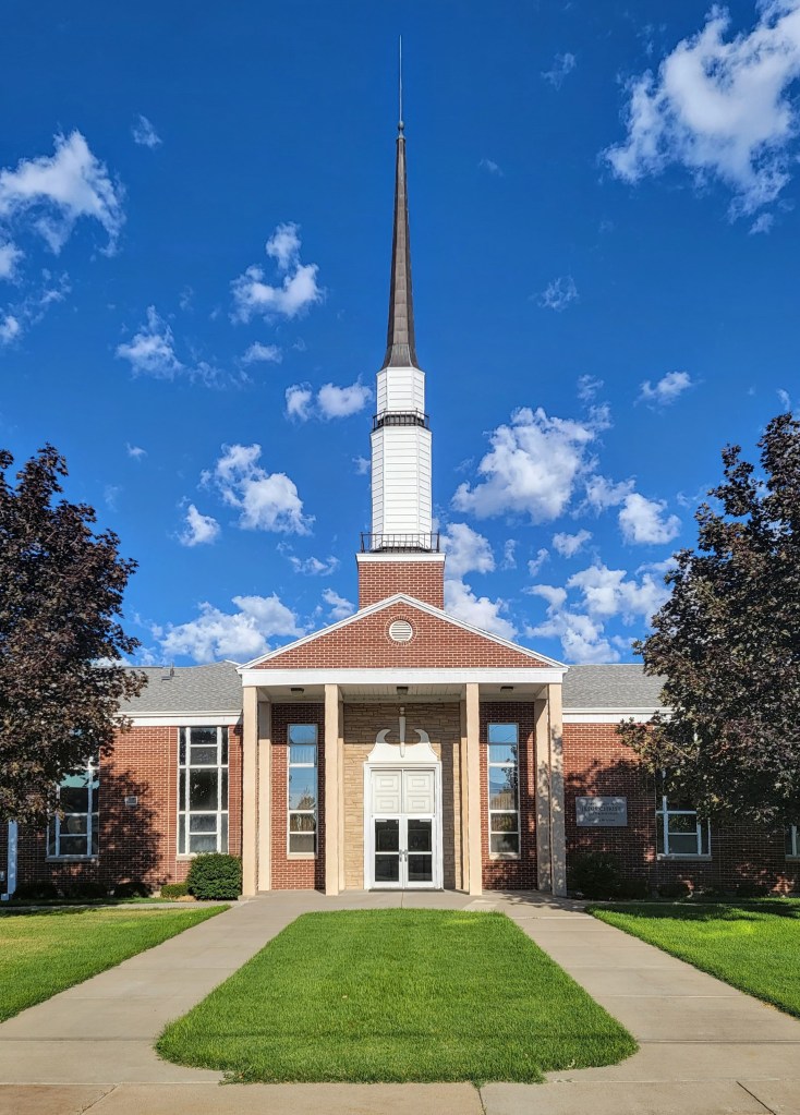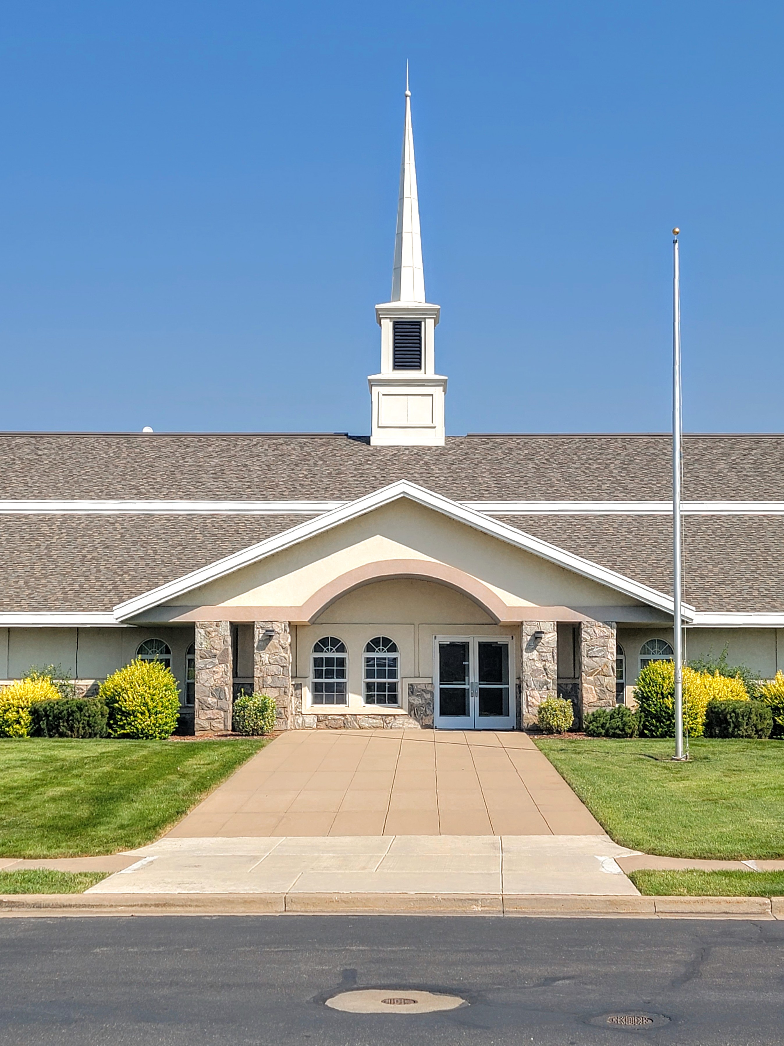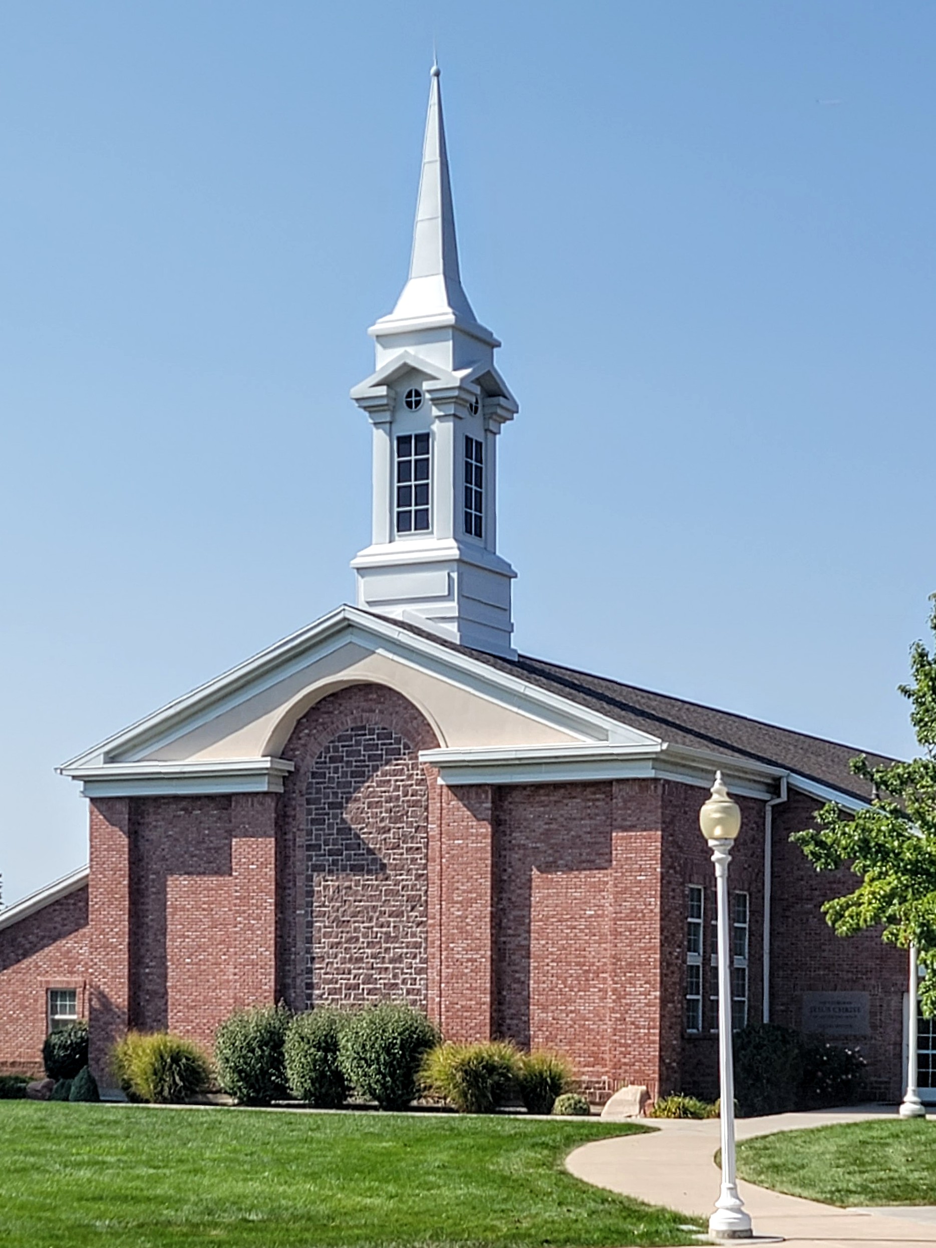 The Brower plan placed the entire meetinghouse under a single gabled roof structure which greatly increased the affordibility and efficiency of the building. The Cody plan (first built in Cody, WY in 1979) economized even further by eliminating the facade of the meetinghouse entirely and replacing it with a hipped roof which descended to a first floor bank of windows (see illustration above).