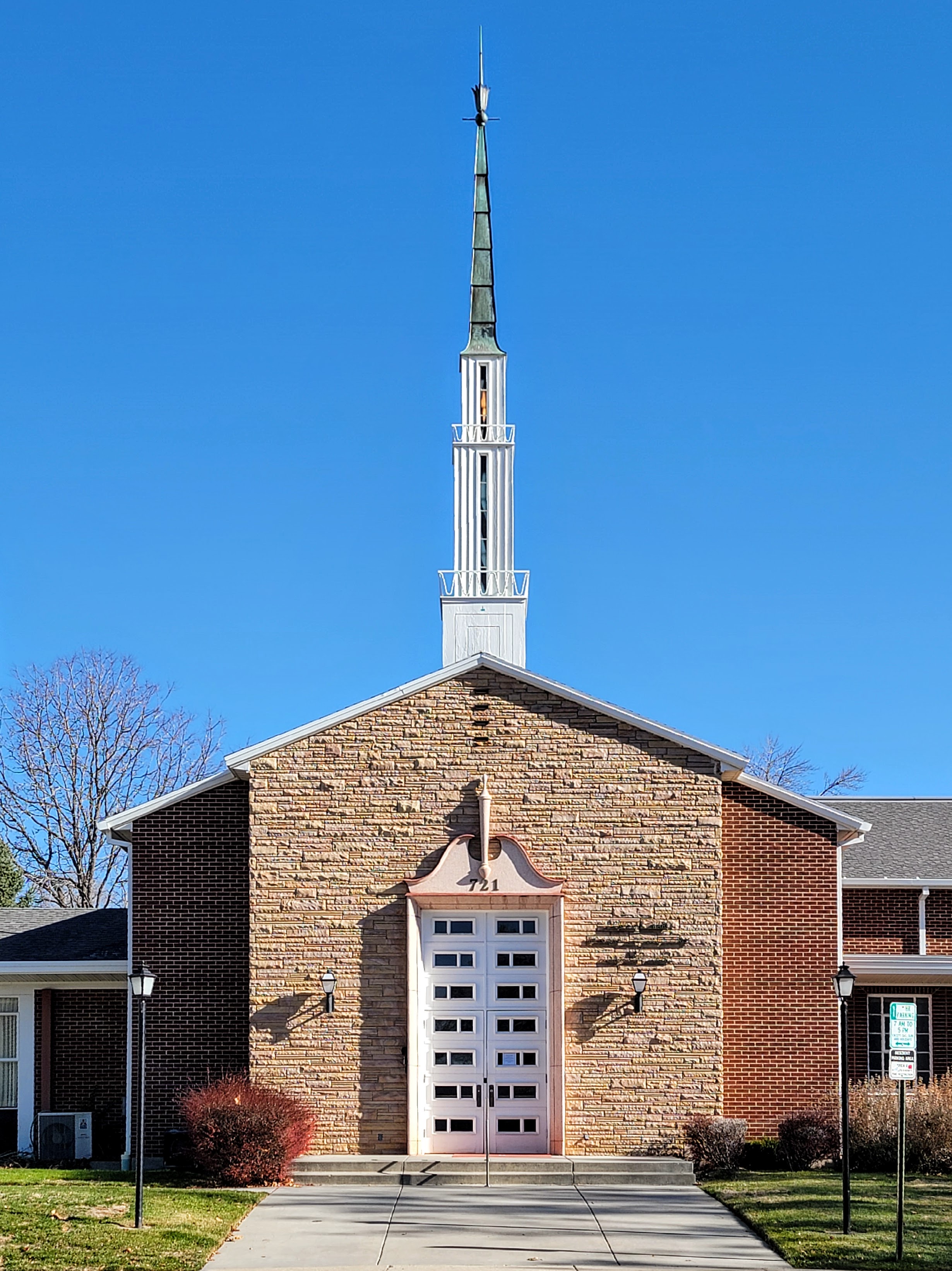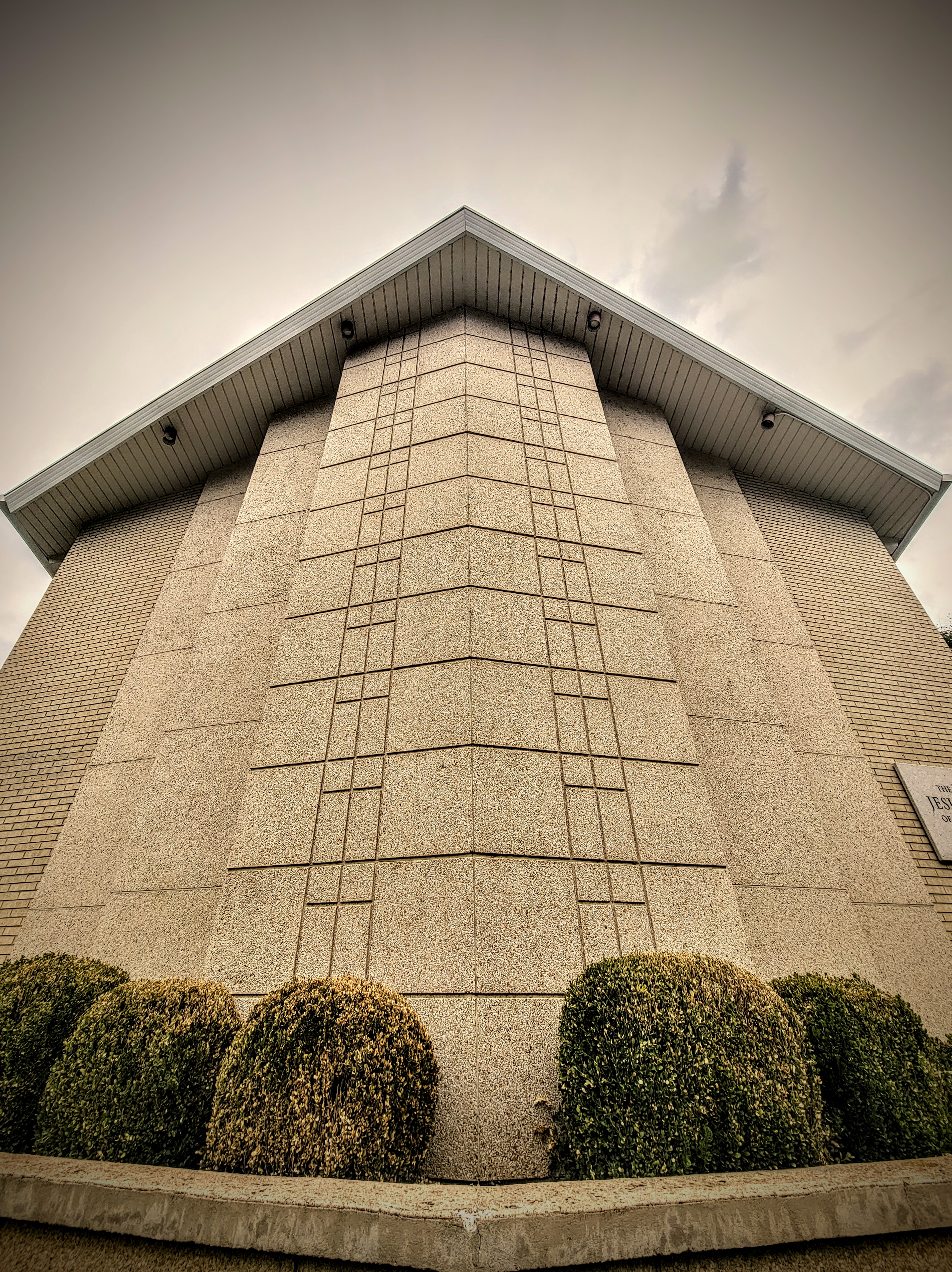 In the 60s, the overall form of the meetinghouse changed dramatically. It was suddenly obvious from the outside that these meetinghouses were built around a central chapel with extended wings made up of classrooms or offices. It was a pleasing arrangement of abstracted forms: squares, gables, and rectangles, punctuated by an impressive modern spire. These silhouettes stood out beautifully within their neighborhoods and they looked unmistakably like churches even though they contained no traditional religious motifs.