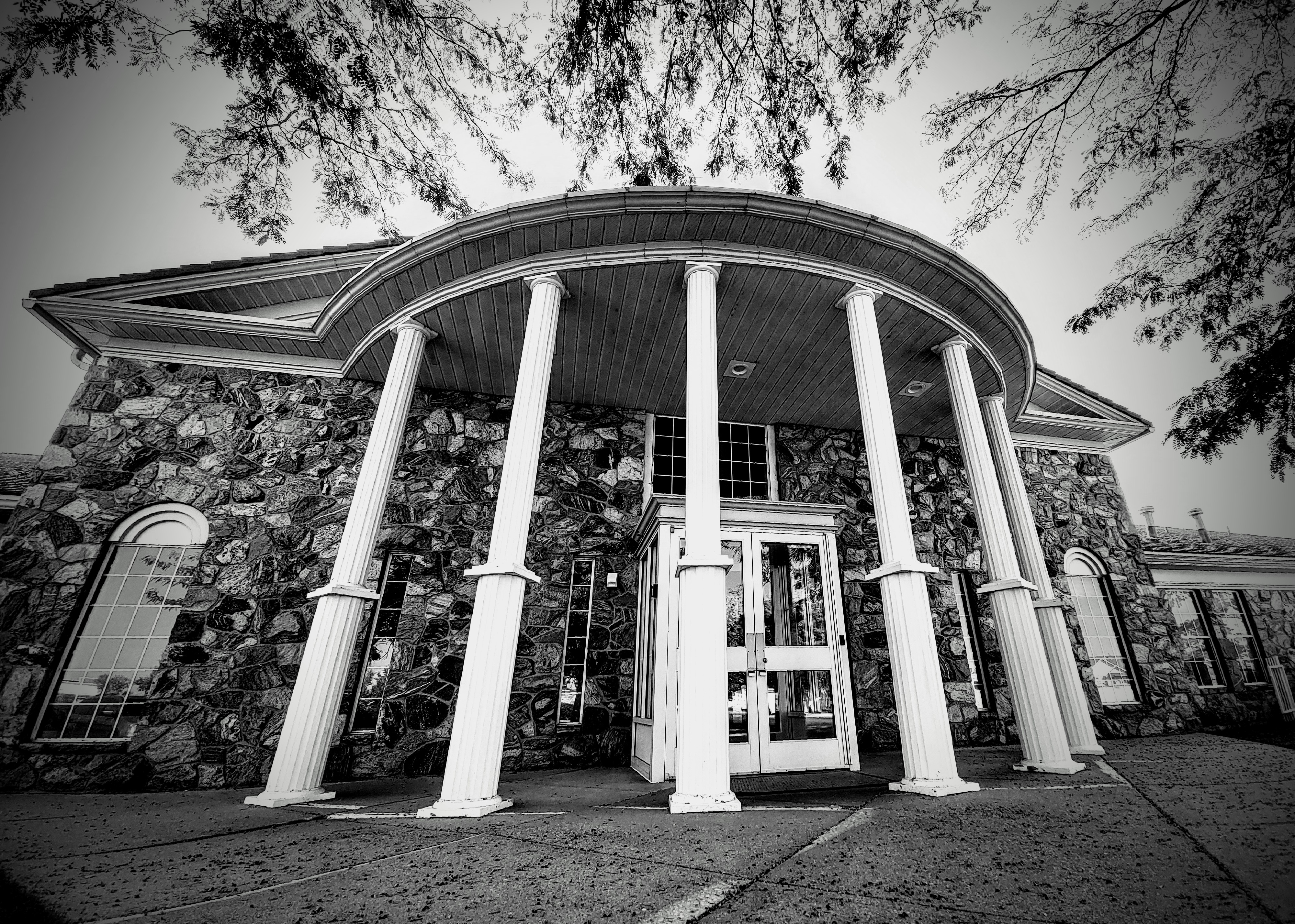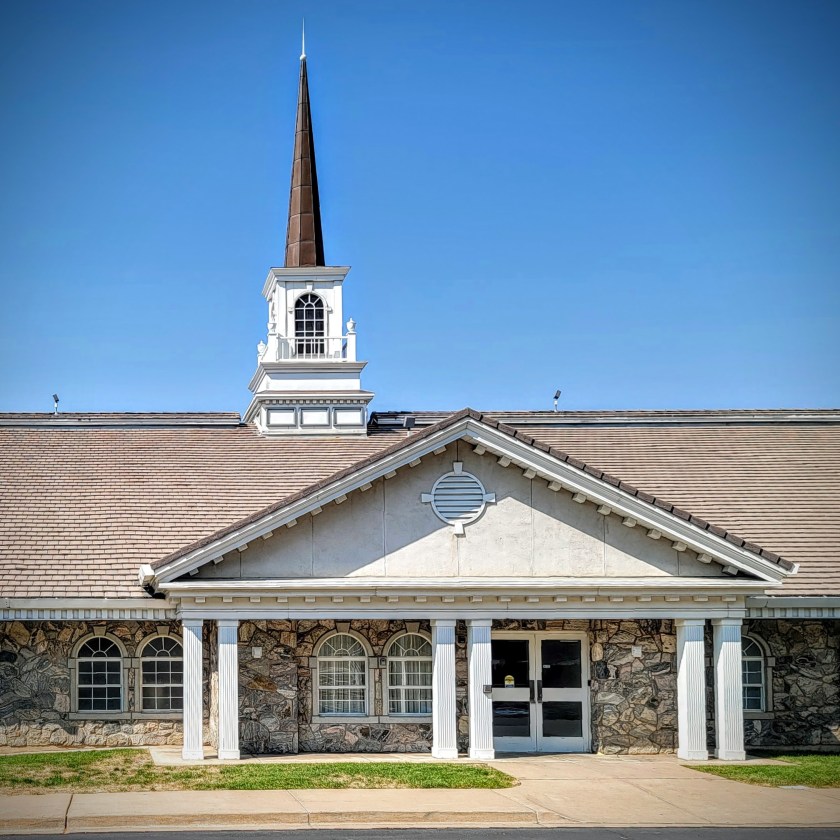 In the 90s and early 2000s, LDS meetinghouse design started to evolve in ways that might be called post-modern. Ornamental details were abandoned, leaving minimalist arches and simplified towers that merely suggested the “idea” of a church. Entryways were often enclosed in wide, half-circle arches. One design features a bold set of faux Doric columns framed by a tall steeple with two descending rooflines perfectly matched in length, a uniquely balanced and pleasing composition. (If a circle is superimposed on the photo below, the church’s architecture divides the circle perfectly into thirds, like the Mercedes Benz logo. The beauty of this proportionality is enhanced symbolically by the presence of the ancient Greek Doric order and its association with mathematical perfection. LDS chapels usually prioritize function over form, but this composition manages to align both functionality and form.)