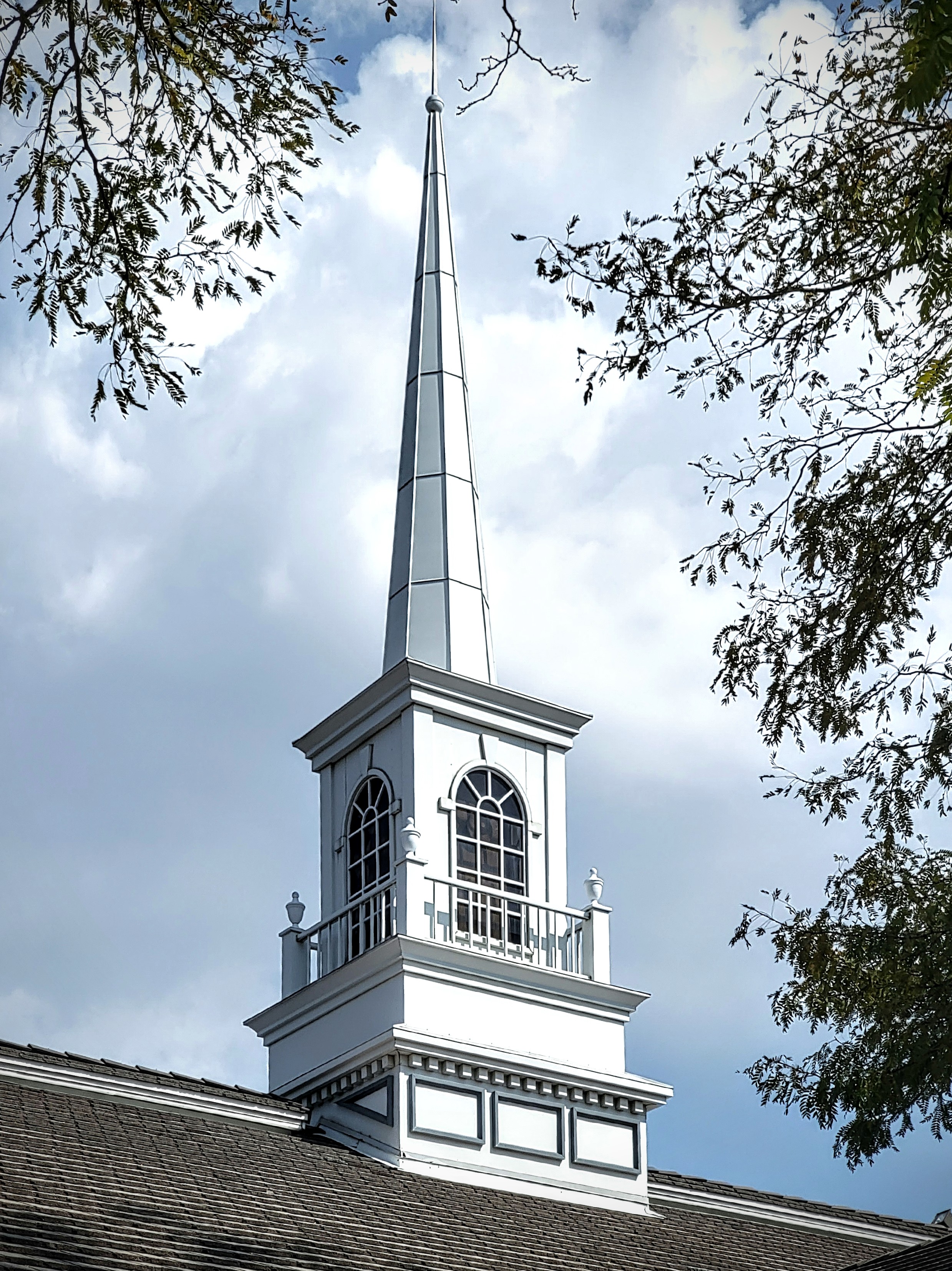 It didn’t take long before architects started decorating the Brower and Cody plans with classical and colonial motifs. The utilitarian rain gutters were redesigned with long courses of aluminum dentils. Porticos with columns were added to side entrances. Arched windows were also added. The steeple was replaced with an ornate, colonial style bell-tower, complete with a balustrade. This was a radical departure from the modernist period of the 60s and 70s. It may have been precipitated by social changes in the United States during the late 70s which saw the emergence of a new, consolidated conservative movement which idealized America’s founding fathers and colonial religions they belonged to.