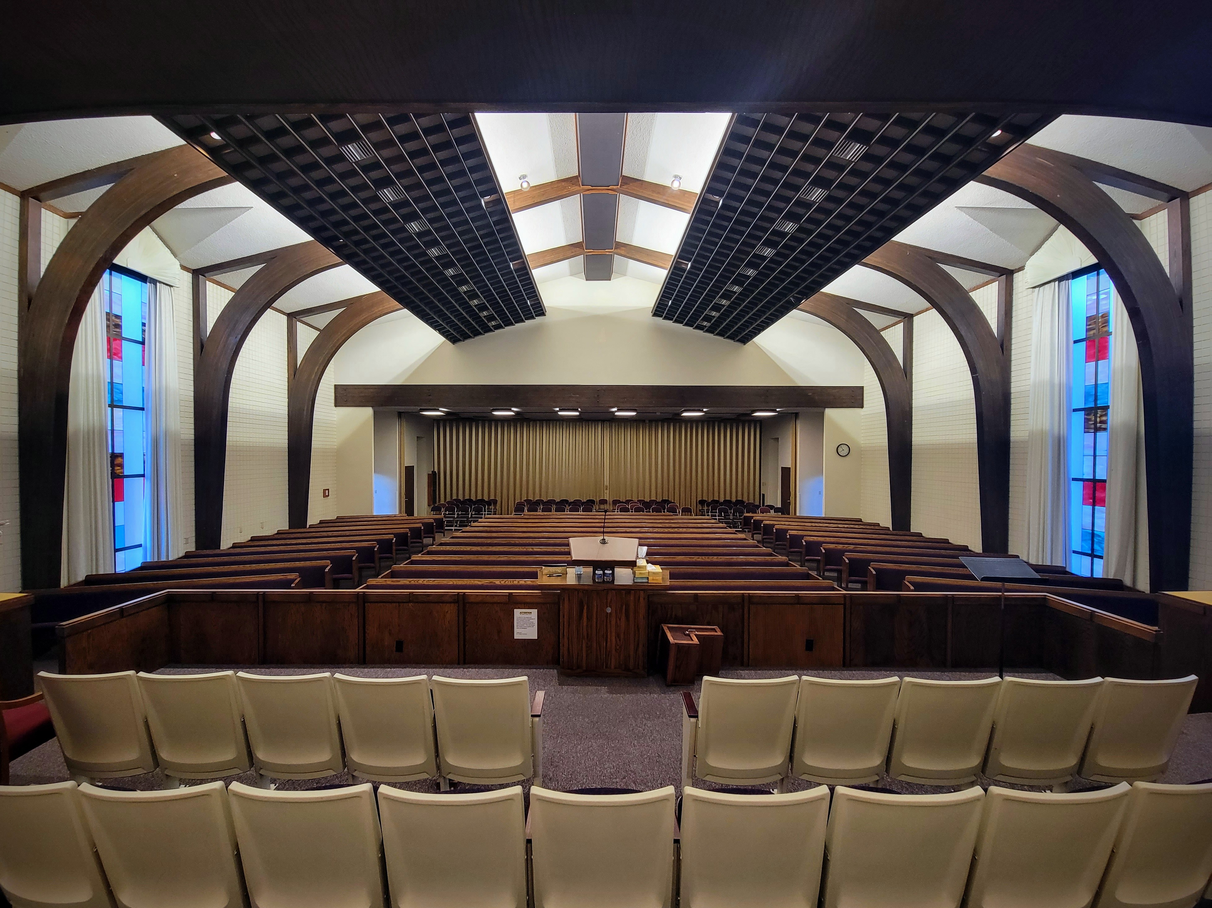 With the exterior changes to the Brower and Cody models, modernist elements in the chapel were stripped away and replaced with classical motifs. The bright, open aesthetic was retained and in some cases enhanced with lighter wood stains, brighter lights, and soft pastel coloring. The result was a new kind of chapel experience, one that felt particularly welcoming, bright, and comfortable. This sense of comfort is enhanced by the traditionalism that is associated with classical architectural motifs.