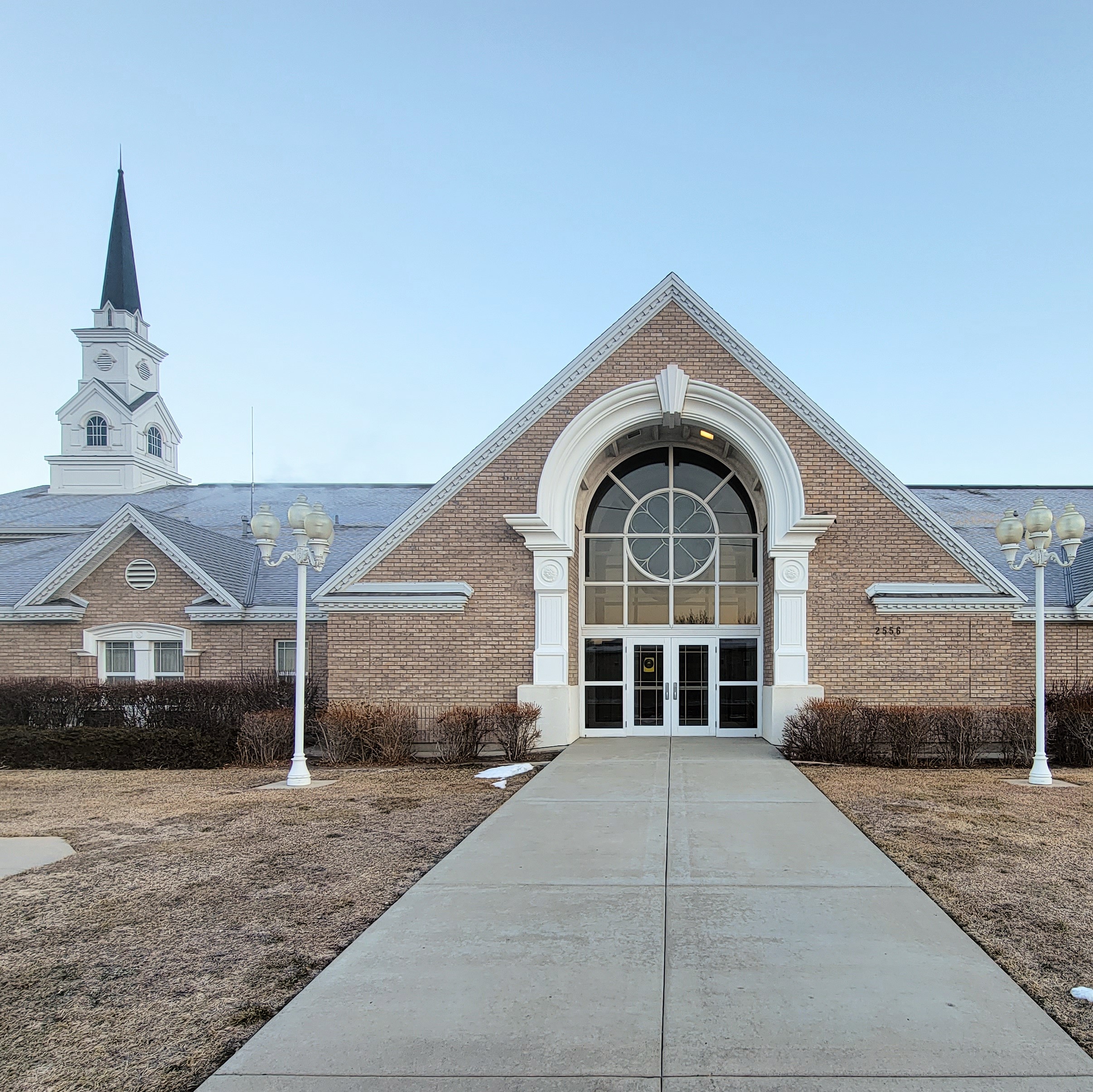 Romanesque is an uncommon choice in 21st century architecture. When arches are used, they are generally built in a refined classical style. And if one wants to evoke a medieval connection, the gothic style is generally chosen. I did however stumble across this Centerville Utah meetinghouse which seems to play upon the romanesque tradition. Its arches are built in a layered style that was common in ancient romanesque. This connection is enhanced by the odd choice of steeple. Most recent LDS meetinghouses feature a colonial style steeple, but this one clearly departs from the norm. It has what appears to be a long, narrow romanesque bell tower topped by a medieval-looking aluminum spire. A belfry of this kind is quite anachronistic in the romanesque style, especially with its faux shutters. Additionally, the side entryways are decorated with large circular windows reminiscent of French style rose windows, which also would have graced the transepts, or side entrances of medieval cathedrals. The result is a meetinghouse that is more austere than usual, a welcome change from the colonial revival meetinghouses of our day.