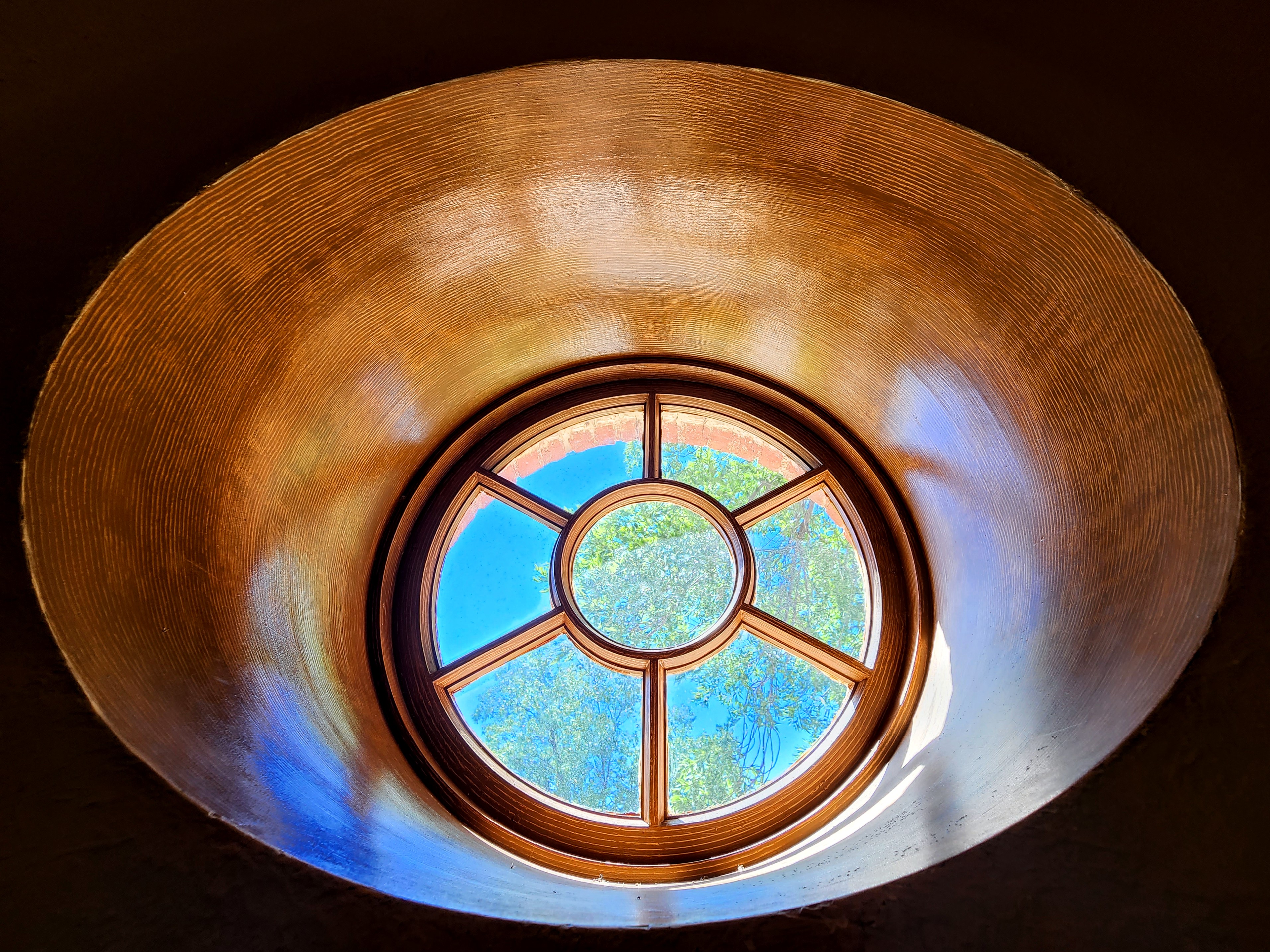 The facade features three towers of differing height. Each of the three towers contains pleasing arrangements of romanesque arches in various lengths and sizes. The towers also feature small round windows which seem to evoke the idea of an “eye.” It’s an unsettling and curious feature, but one that gives the building an otherworldly quality. Once inside the towers, one discovers that these little windows were built to resemble the porthole of a ship. Clearly they were included to celebrate the craftsmanship of the shipbuilders who participated in the construction of the building.