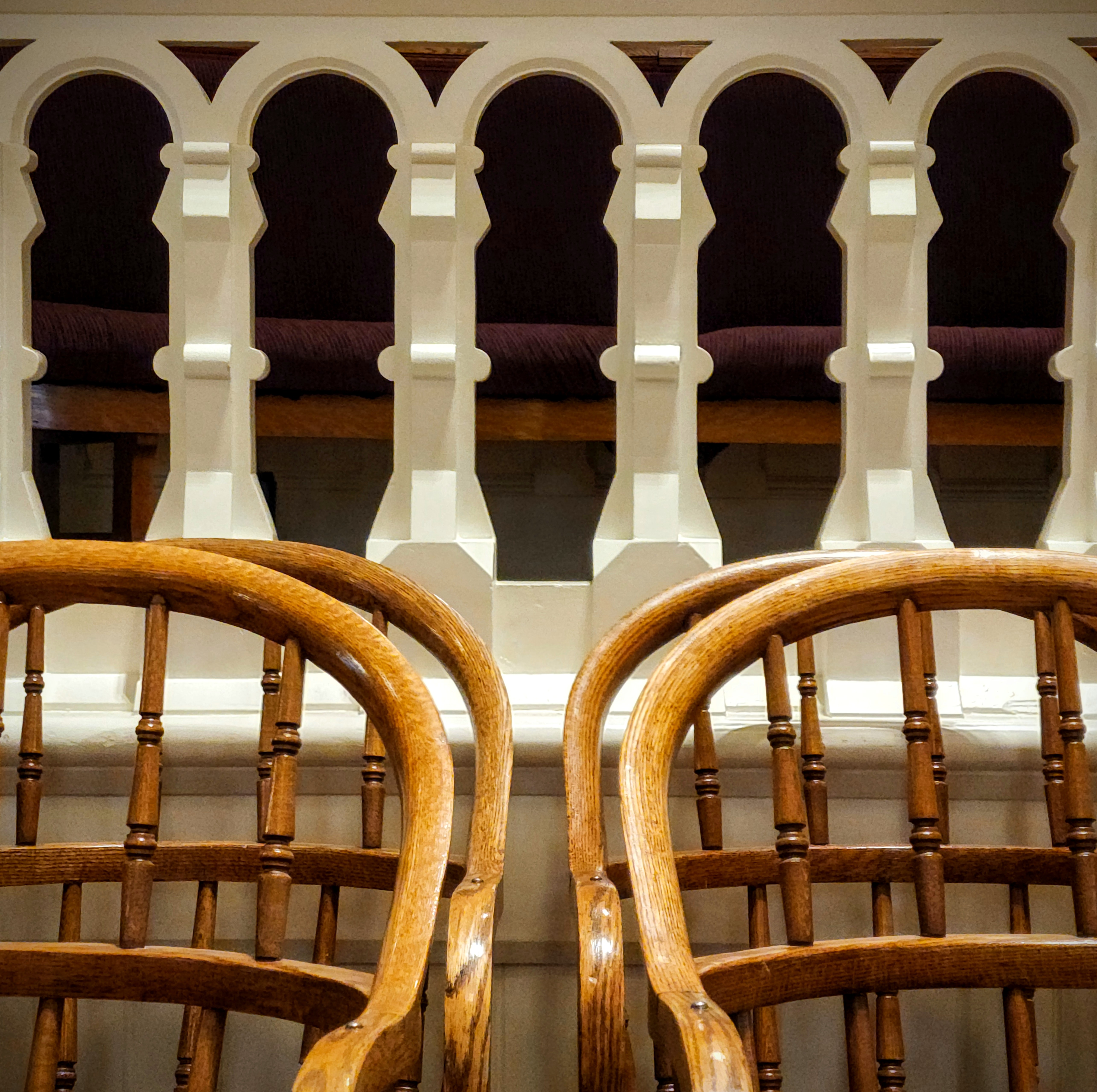 The shipbuilding theme continues in the tabernacle’s ceiling, which resembles the upside-down hull of a ship. It has elaborate arrangements of long, narrow planks which are combined in unique ways to create an interesting design. The remainder of the building is notable for its simple but fine woodwork in the gothic style.