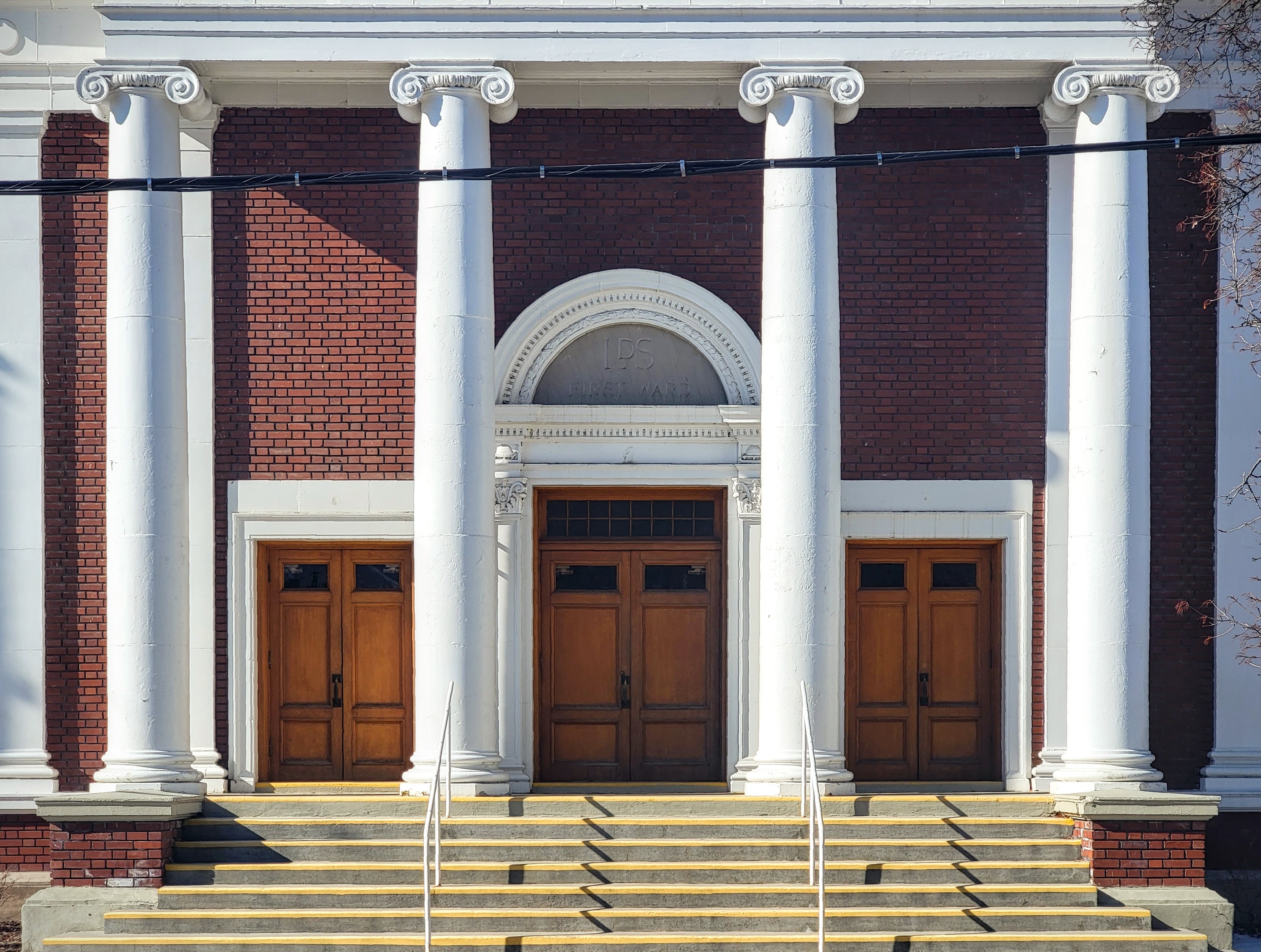 LDS chapels in the Greek Revival style are evocative reflections on this ancient past. Architects from this period attempted to follow rules laid down by the Roman architect Vitruvius, who first categorized the Doric, Ionic, and Corinthian orders. While most LDS examples were built in the restrained Doric style, there is an abandoned chapel in Ogden which features a magnificent Corinthian capitol, as well as the beautiful Forest Dale Ward shown above.